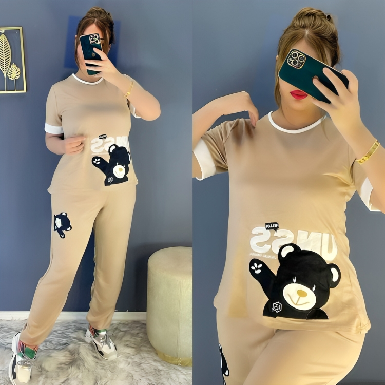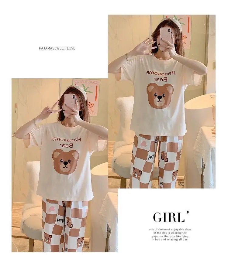 PURPLE BEAR PRINTED WITH CHECK PAJAMA NIGHT WEAR.
