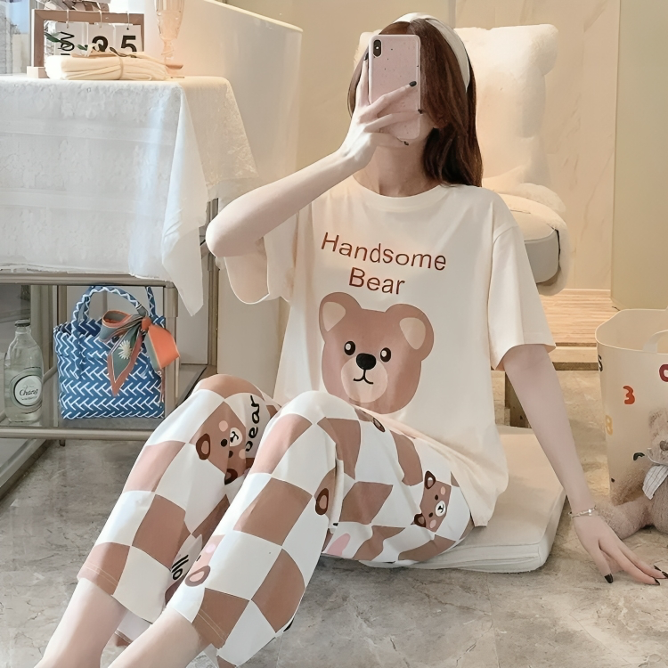 BEIGE LOVE SLEEP PRINTED PJ SET