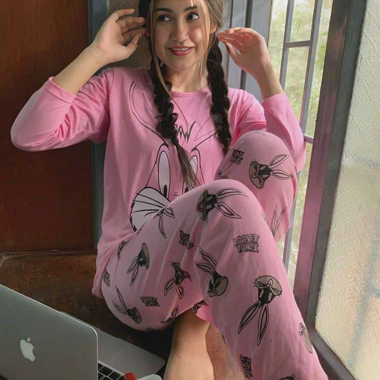 GREY BUGS BUNNY PRINTED NIGHT SUIT