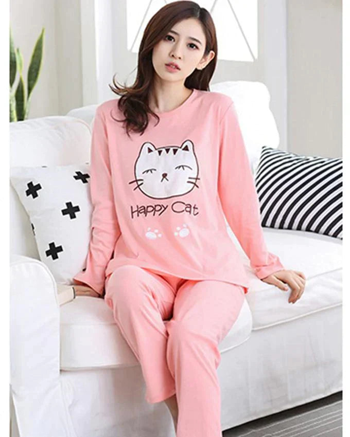 Pink Sharkee Style Full Sleeves Printed Night Suit